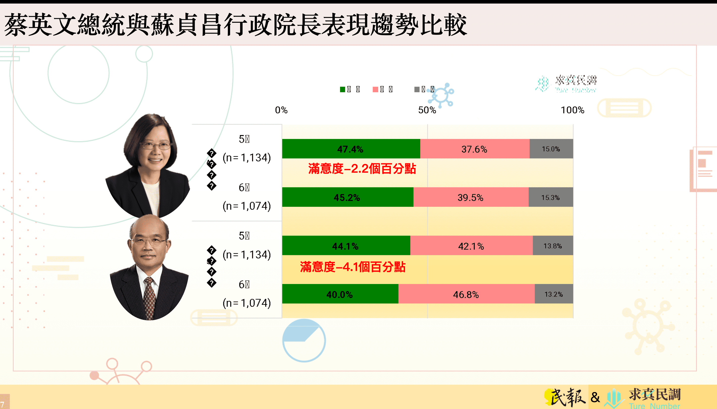 蔡總統滿意度小降仍有四成五 閣揆蘇貞昌不滿意大於滿意