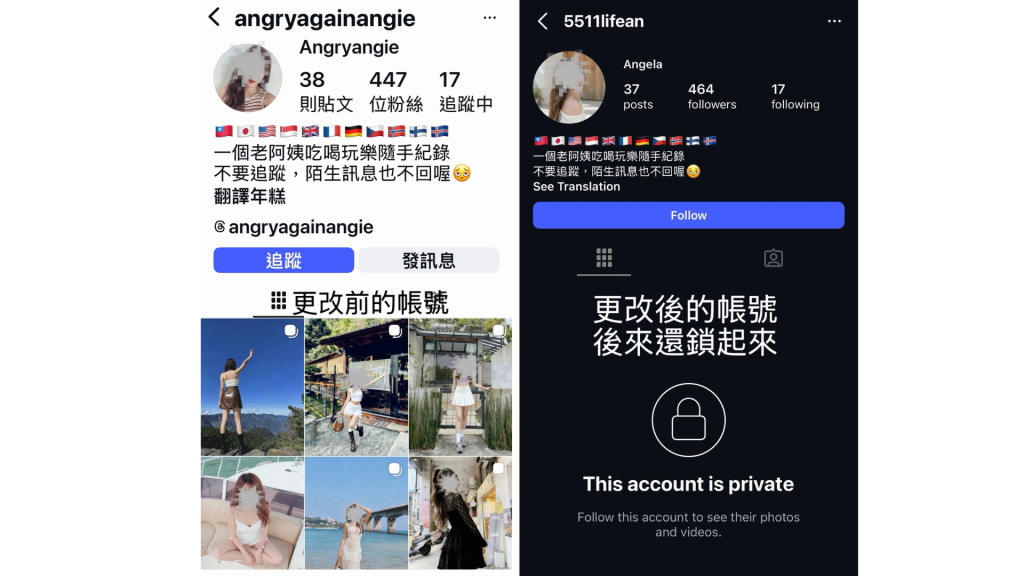 此外,還跨平台經營,不僅在Instagram發照片,甚至在Threads上定期發文抱怨「當老闆助理很辛苦」等內容,建立人設,也跟其他追蹤者有很熱烈且甜言蜜語的互動,看起來就像「真實存在的人」,直到本尊被朋友詢問「怎麼開小帳去別的地方玩?」才發現這已經經營數年的假分身存在。本尊在限動提出質問後,該分身帳號迅速鎖帳號,經網友檢舉才順利被移除。