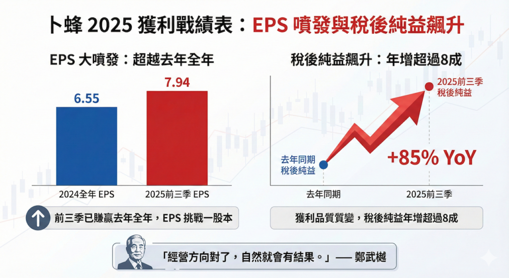 2026年開春,食品大廠卜蜂成為投資市場焦點。高齡90歲、紅光滿面的卜蜂董事長鄭武樾,昨(6)日揭開2025年的亮眼成績單,前三季EPS高達7.94元,全年「賺超過一個股本」幾乎已成定局。面對外界驚嘆傳統食品業也能變身「獲利怪獸」,鄭武樾謙遜中帶著自信,他直言:「經營方向對了,自然就會有結果。」