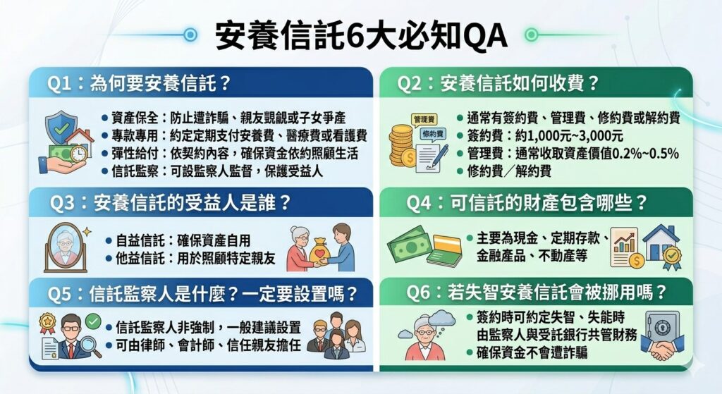 金管會因此推出「信託2.0計畫」,希望將安養信託結合防詐功能,鼓勵民眾善用安養信託,規劃老年財產管理運用,透過信託制度保障財產安全,滿足安養與照護生活需求,以保護高齡長者及自身退休資產。