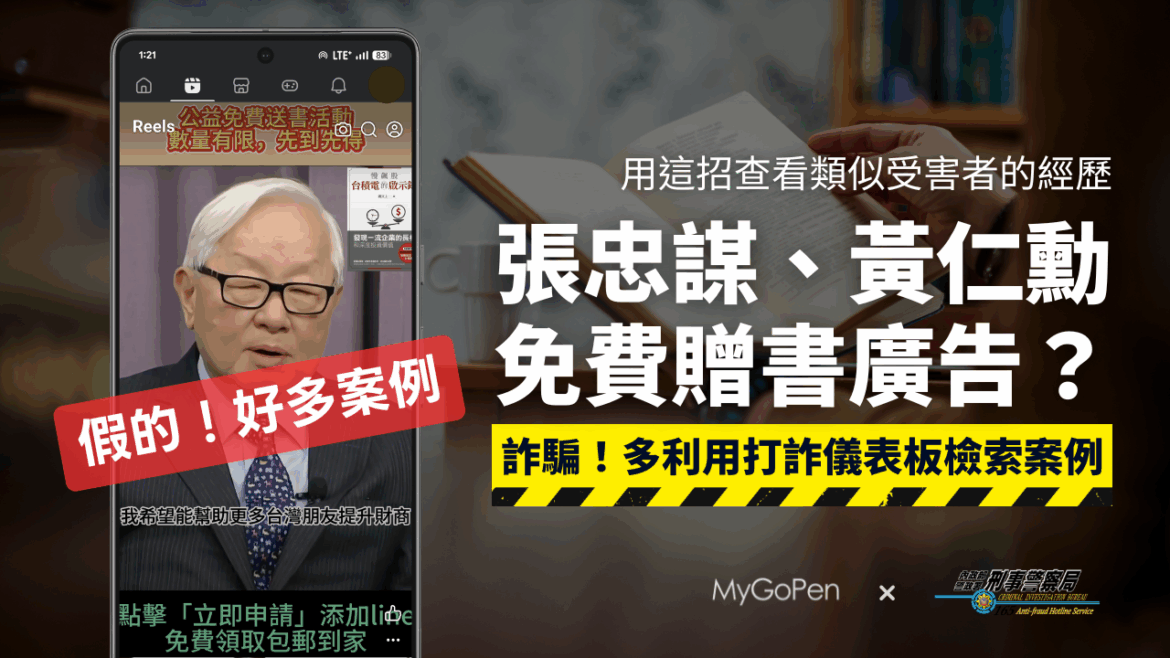 詐騙集團看準台積電是國人最熟知的公司之一,借機利用名人光環進行犯罪,這些冒名廣告宣稱張忠謀會免費贈送書籍或親自傳授投資理財經驗。