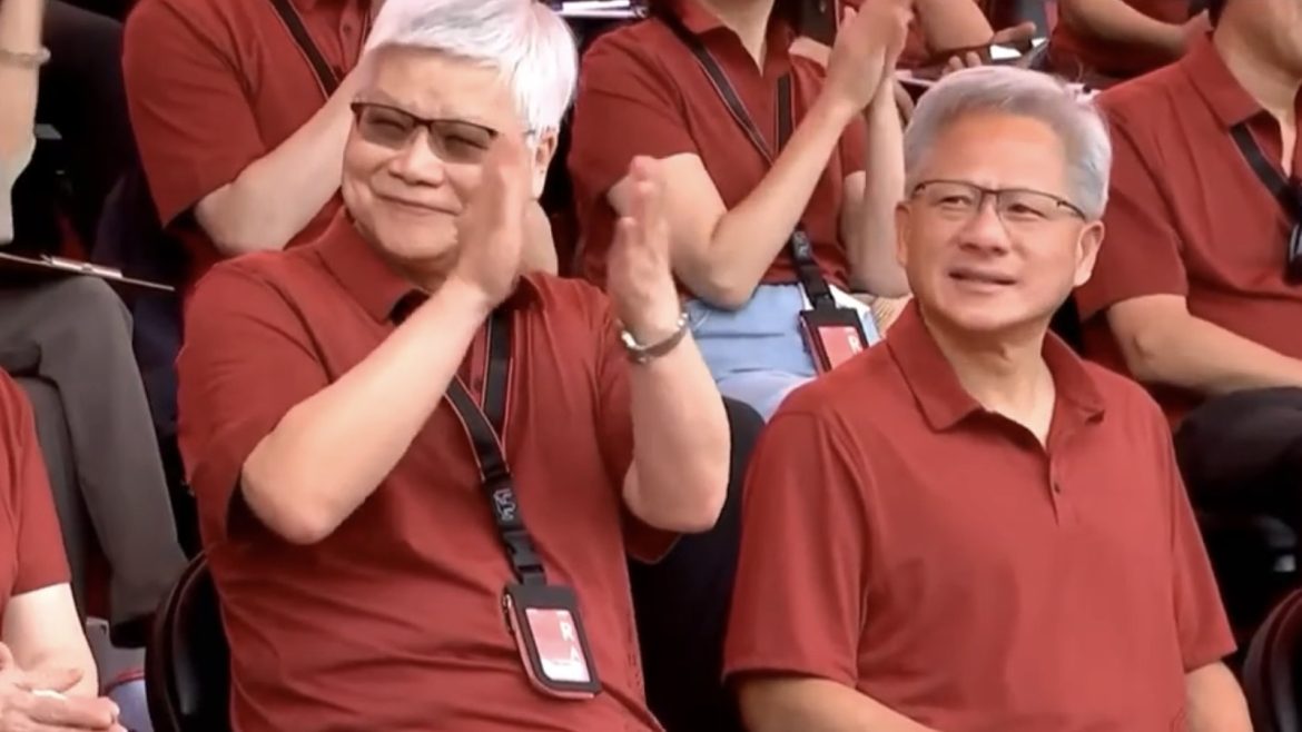 黃仁勳7日旋風抵台,結束台南台積電3奈米廠行程、吃完美食,晚間10點才回到台北。今起個大早南下新竹縣立體育場,他精神抖擻出席台積電運動會,一出場展現超強的親民魅力,台積電員工要求合影來者不拒,更以「一家人」來形容台積電與輝達的緊密關係。