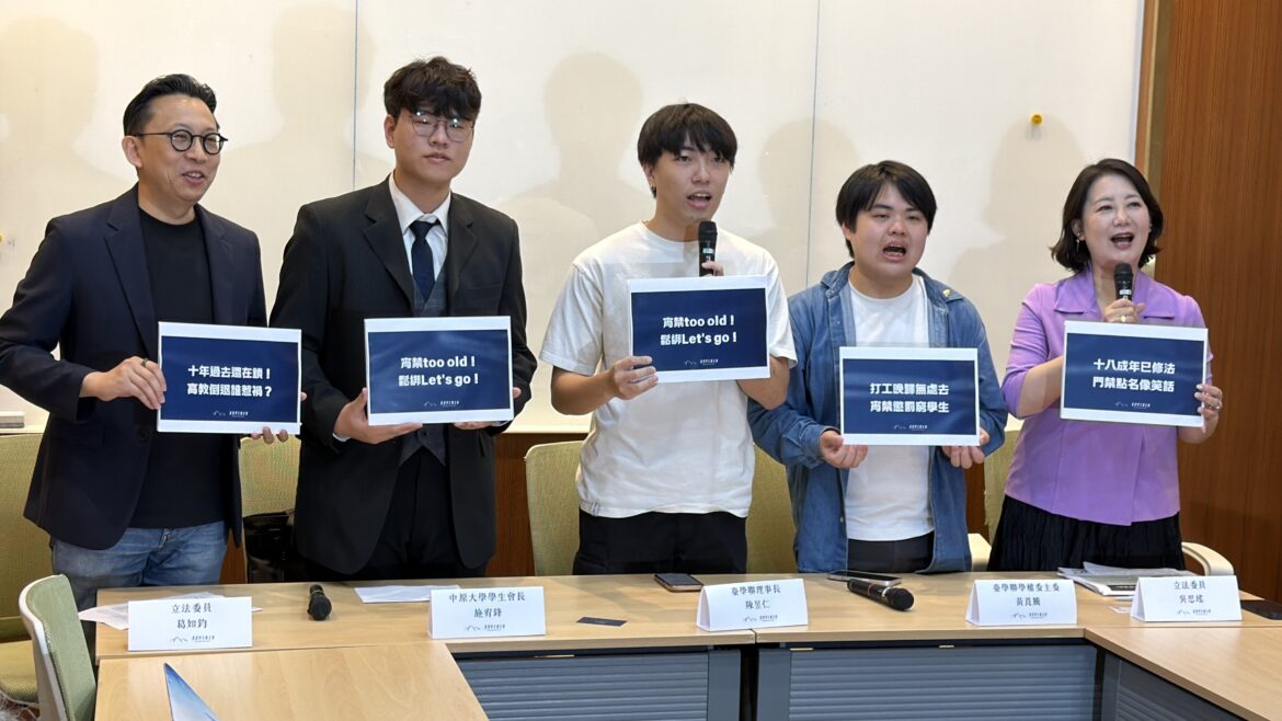台灣學生聯合會、中原大學學生會於今日(29日)與民進黨立委吳思瑤、國民黨立委葛如鈞共同召開記者會,呼籲教育部及各大專院校全面解除宿舍宵禁。