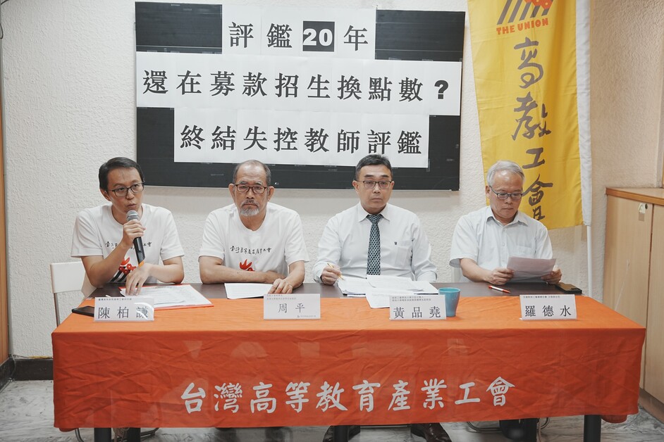 高教工會理事長周平直指,有些老師為了通過教師評鑑,甚至會自己捐錢假裝是募款、產學合作自己貼錢,這樣的教師評鑑已經遠離初衷,這些手段與目的的錯置,讓教學生涯變成集點人生。