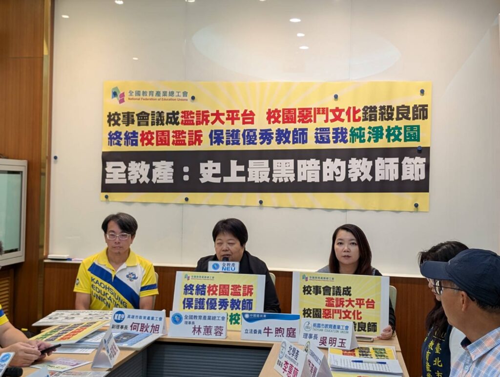 更嚴重的是,全教產理事長林蕙蓉指出,校事會議掌握著教師工作的生死大權,程序卻完全由校長主導,從調查委員的遴選、律師的聘請,全都由校長說了算,實務上亦不乏藉機黨同伐異、對於特定教師小案大辦之情況。