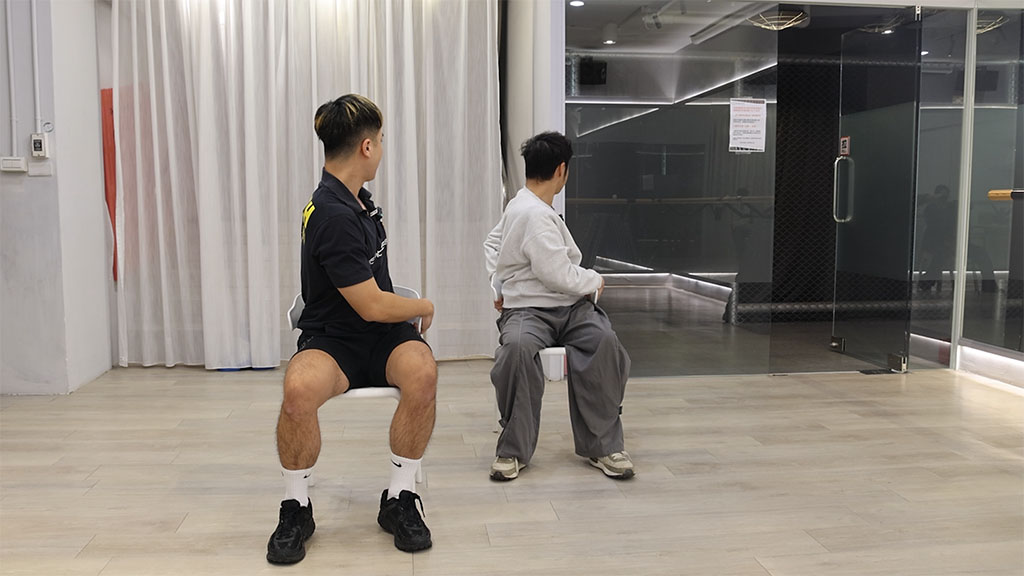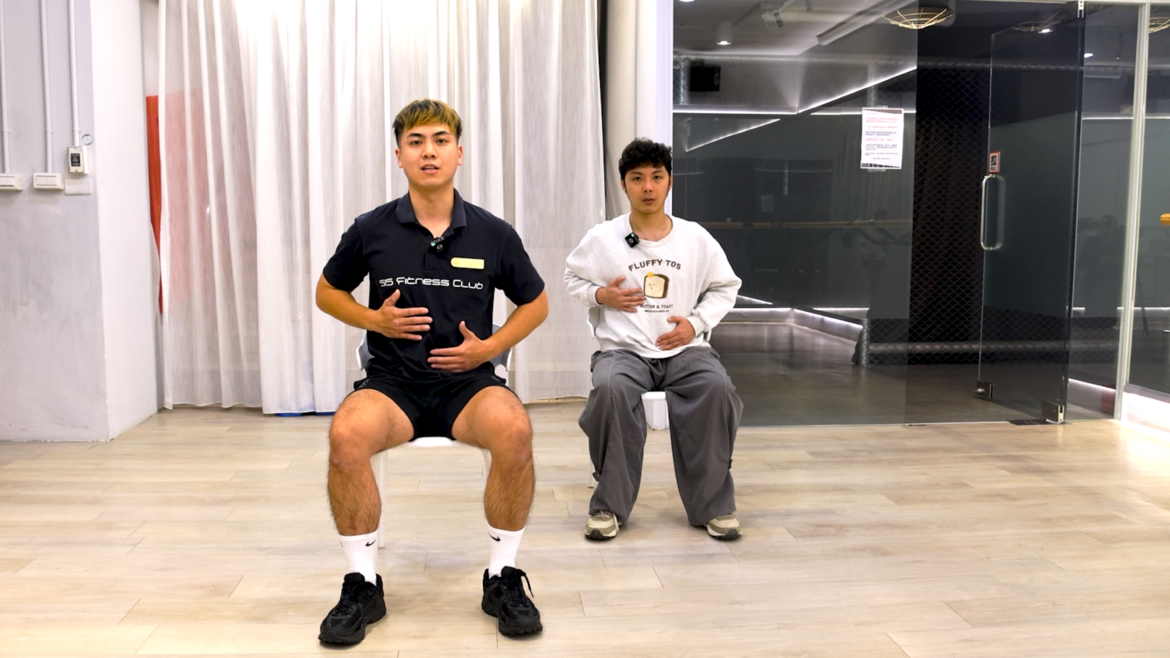 動作1:坐在椅子上,利用上半身擴胸呼吸