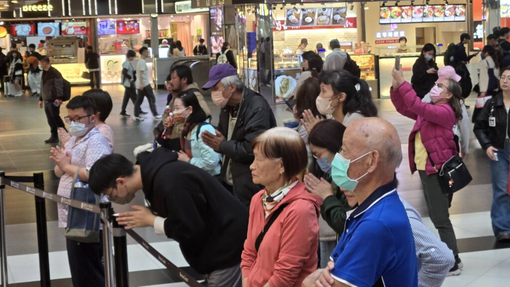 台北車站路過的民眾也相當虔誠參拜。(記者鄒尚謙攝)