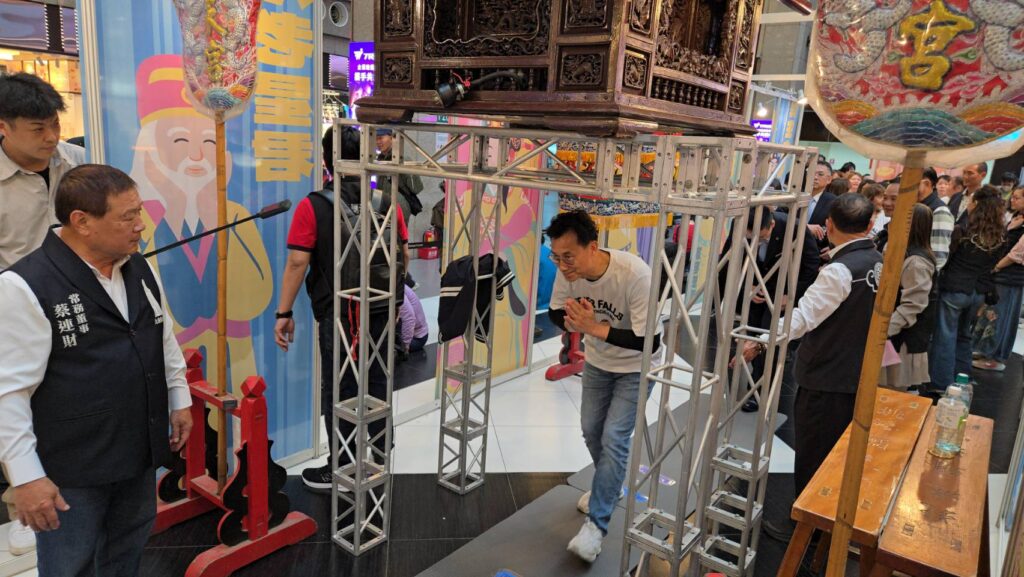 現場首度將駐轎用的架位升高至近1.5公尺,讓使用高背式輪椅或電動輪椅的族群,僅需稍微低頭便能順利通過,不再受限於身體狀況而無法親近神明。同時,通道下方亦鋪設了厚實軟墊,保護孩童與長者在通行時的安全,期望透過這些微小而細膩的改變,將「共融」理念具象化,讓每一位民眾都能在無障礙的環境中感受媽祖的庇佑。