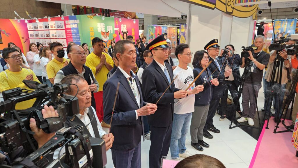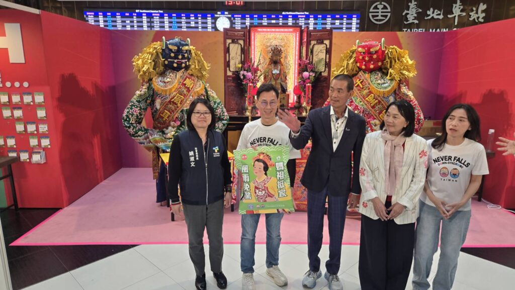 唐氏症基金會、台鐵公司、北港朝天宮、台北市社會局共同迎接北港媽祖安座。(記者鄒尚謙攝)