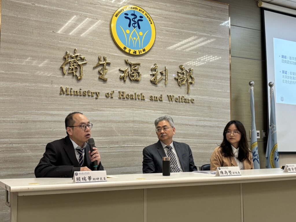 由國衛院神經及精神醫學研究中心陳為堅特聘研究員帶領的研究團隊,利用「台灣中老年健康因子及健康老化長期研究」的大數據,針對4千多位55歲以上、原本認知功能良好的長者進行長達6年的追蹤。研究發現,載脂蛋白「APOEε4」基因與大腦退化有明確關聯。APOE蛋白原本負責調節血脂肪及代謝廢棄蛋白,但其中的ε4型態卻是阿茲海默症最常見的遺傳因子。研究結果顯示,攜帶這種基因的長者,認知功能退化的速度明顯比一般人快。