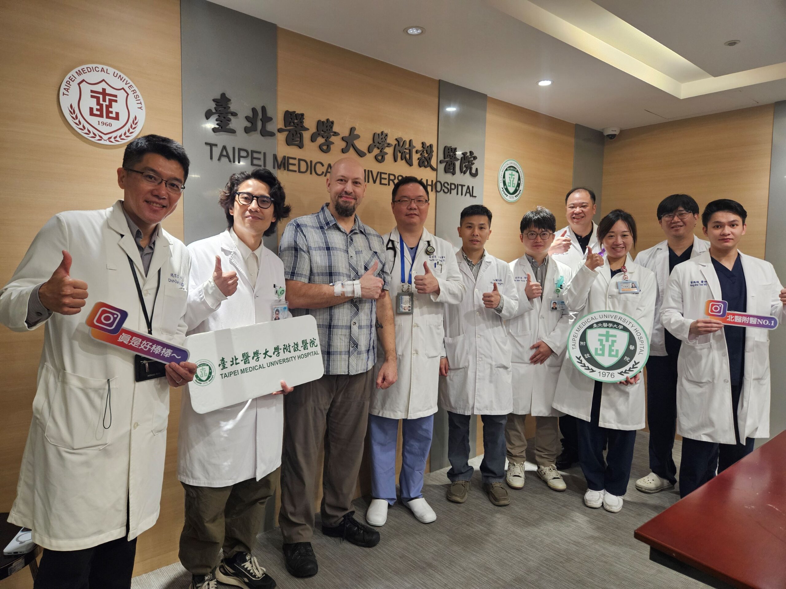 近日北醫附醫特地為這位名為Atom的美國旅客與其妻子舉行重生慶祝會。趙君傑說,這是一場由民眾、消防救護到醫療跨單位接力的成功案例。