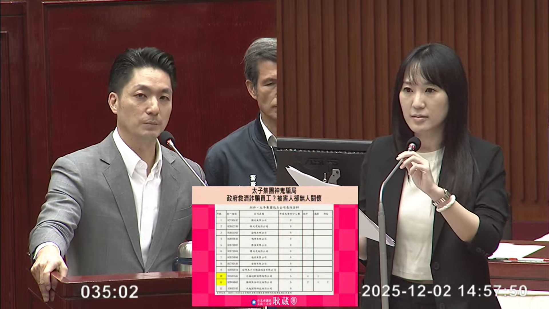 耿葳質疑,現今詐騙橫行,太子集團不會是單一個案,台北市市民很多受害者錢都拿不回來,跨境詐騙受害者更是求助無門,市府是要優先救濟詐團員工,還是幫助受害者?