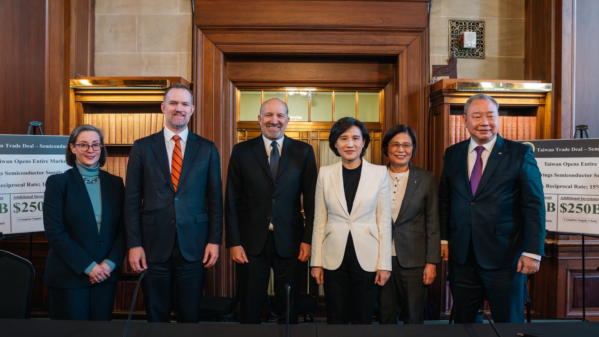 鄭麗君與經貿談判辦公室總談判代表楊珍妮等人,與美國商務部長盧特尼克(Howard Lutnick)已經在美國商務部,簽署投資合作備忘錄(MOU)。談判中聚焦對等關稅,併同232條款關稅與美方進行多輪磋商,順利達成談判預定的4大目標,行政院長卓榮泰今天表示,談判團隊可說目標是全數達成。
