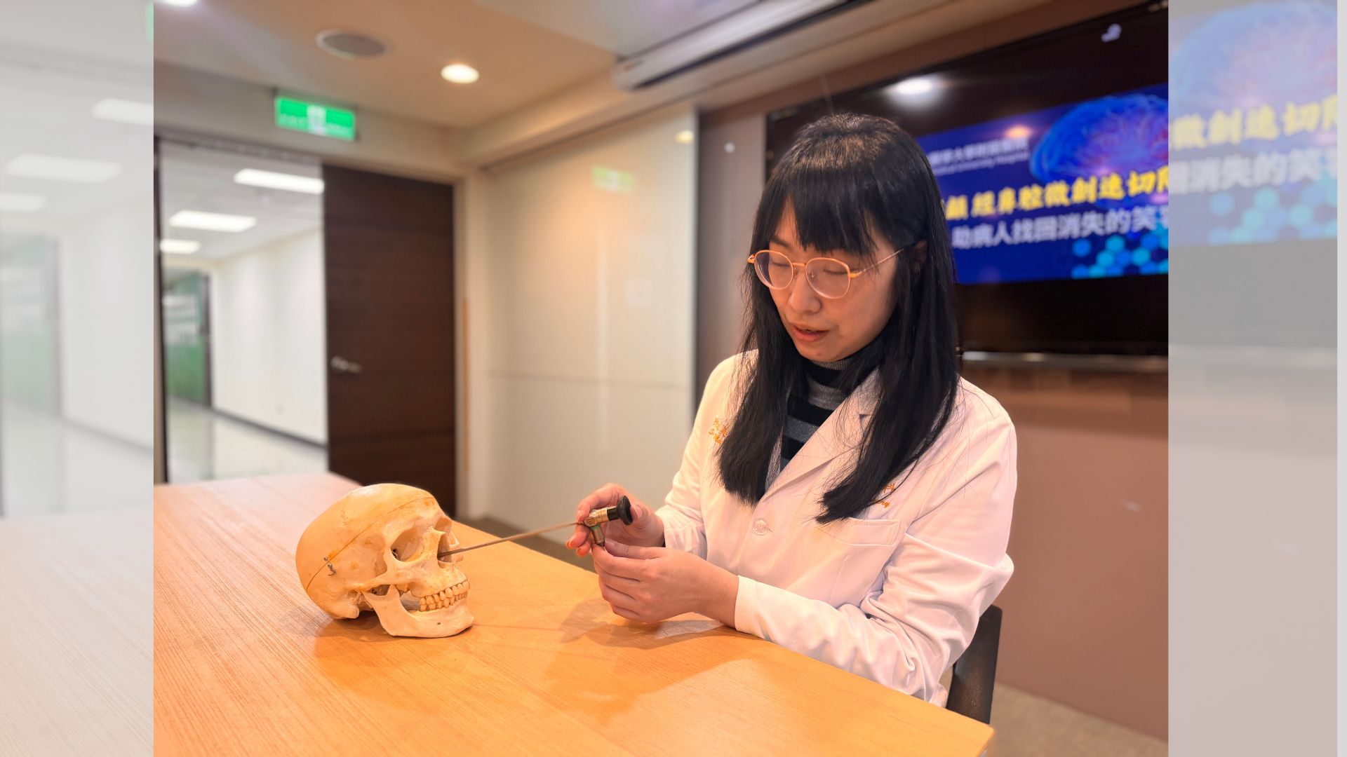 為了精準移除病灶並降低對大腦的傷害,北醫附醫整合神經外科與耳鼻喉科團隊,在混合式手術室(HybridOR)為病人執行「經鼻內視鏡微創顱底手術」。台北醫學大學附設醫院神經外科醫師陳淑美表示,這項技術結合了高階影像與即時神經導航系統,讓醫療團隊能精準掌握腫瘤與周邊重要神經、血管的相對位置。