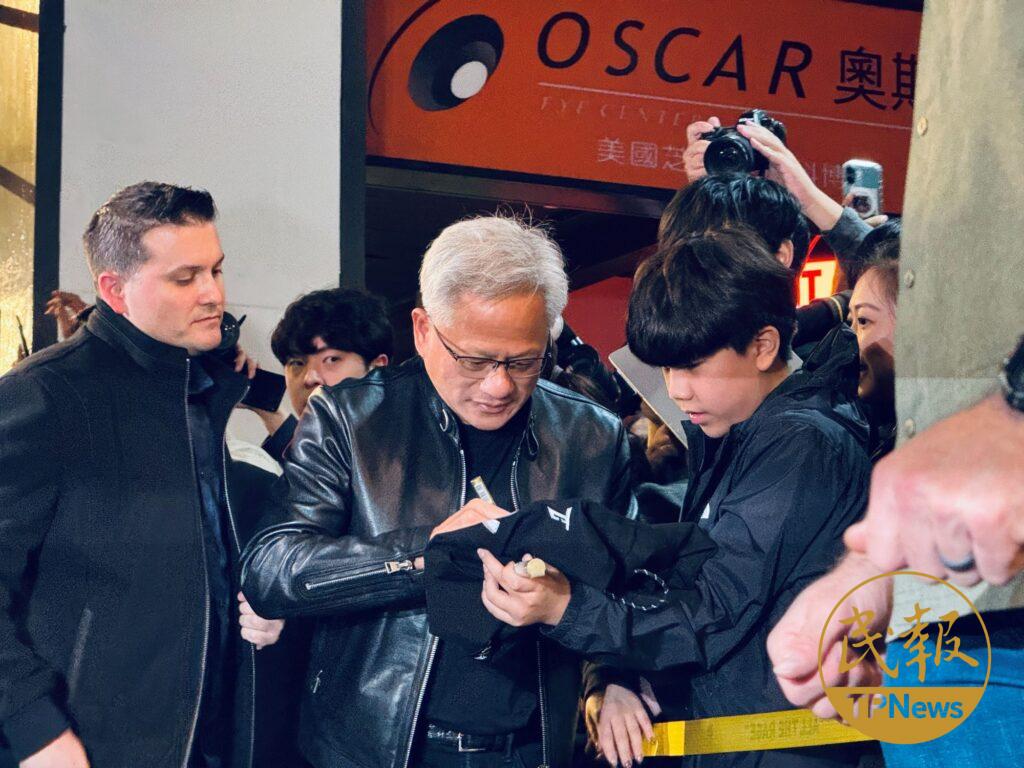 輝達執行長黃仁勳一到場,展現親和力幫民眾簽名。(圖/記者江星翰攝)