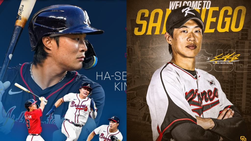 亞特蘭大勇士金河成(左)、聖地牙哥教士宋成文(右)。(圖/翻攝亞特蘭大勇士、宋成文IG)