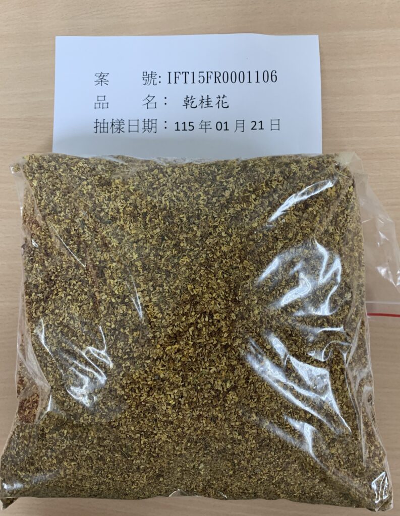 此外,由超美食品有限公司進口的2205公斤中國大陸乾桂花,也被驗出殘留農藥畢芬寧超標及禁用農藥「陶斯松」,依法退運銷毀。食藥署也將針對違規業者調整為20%至50%的加強抽批。