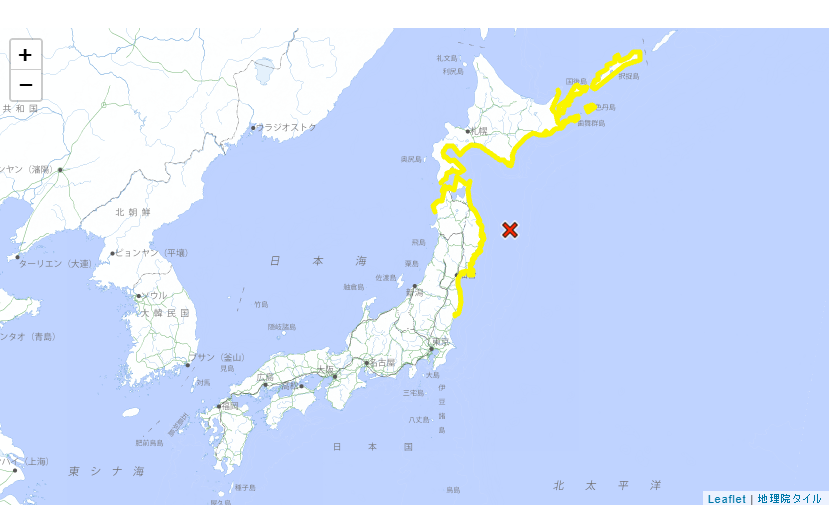 從日本氣象廳報告顯示,將其地震發生時間修正為16時52分,震源深度由原先的10公里更新為19公里,規模則由7.5上修至7.7。強震引發的第一波海嘯迅速抵達東北沿岸,岩手縣久慈港觀測到80公分海嘯;宮古港也測得40公分,劇烈搖晃造成東北新幹線一度出現停電與運行異常。氣象廳雖已將所有海嘯警報下調為「海嘯注意報」,但仍呼籲民眾切勿靠近沿岸和河邊。