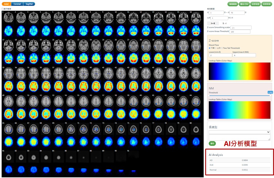 系統可依個案年齡自動比對相對應的正常人腦功能影像資料庫,提升分析的準確性與臨床判讀效率(圖/亞東醫院提供)