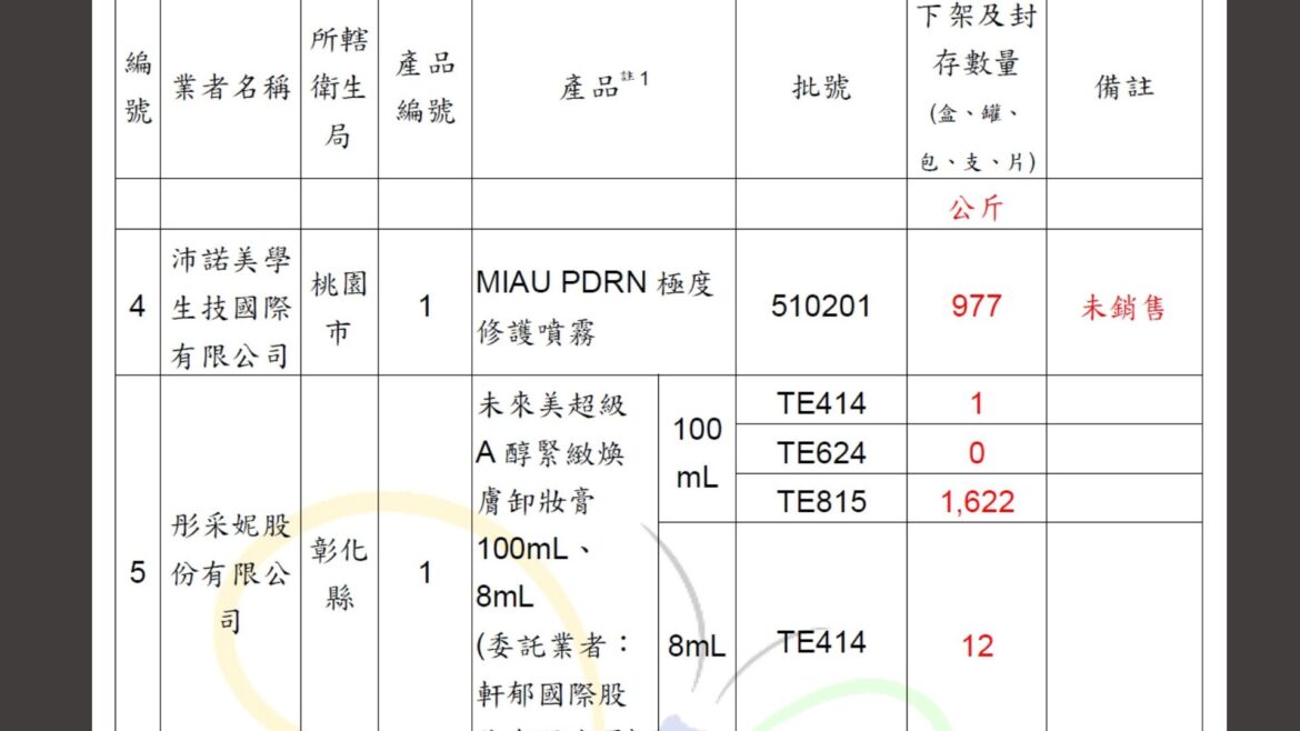在這次更新的產品名單中,新增了2項面膜類產品,衛生單位已要求相關業者立即進行全面下架與回收: