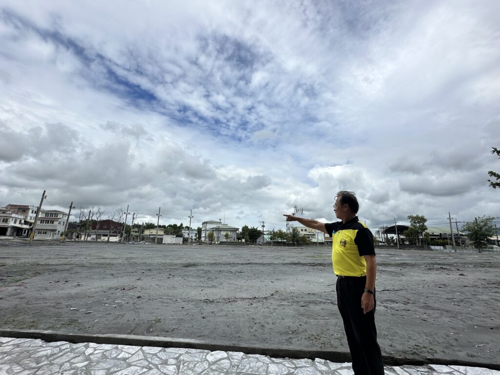 校長指著還沒清理淤泥的校園說,「我們會再種草,再打第一球,孩子還會跑回本壘。」(圖/張瀞文攝)