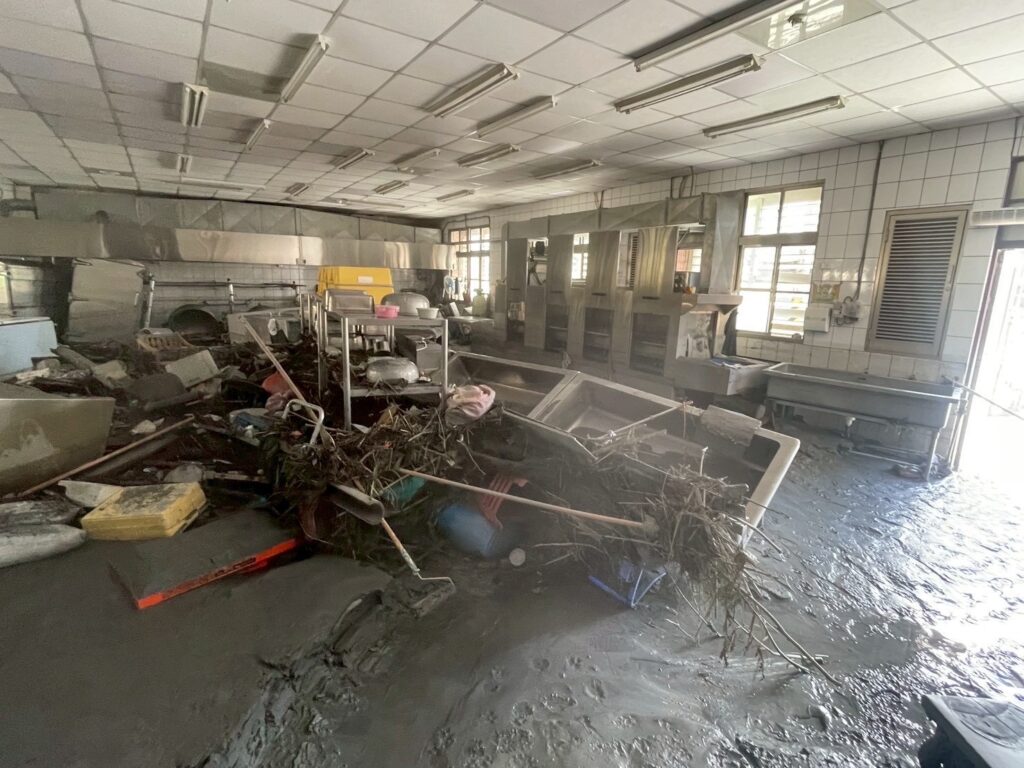 光復國中設有全花蓮縣最重要的「中央廚房」,每日為當地五所小學供餐,如今也被洪水沖毀。(圖/光復國中提供)