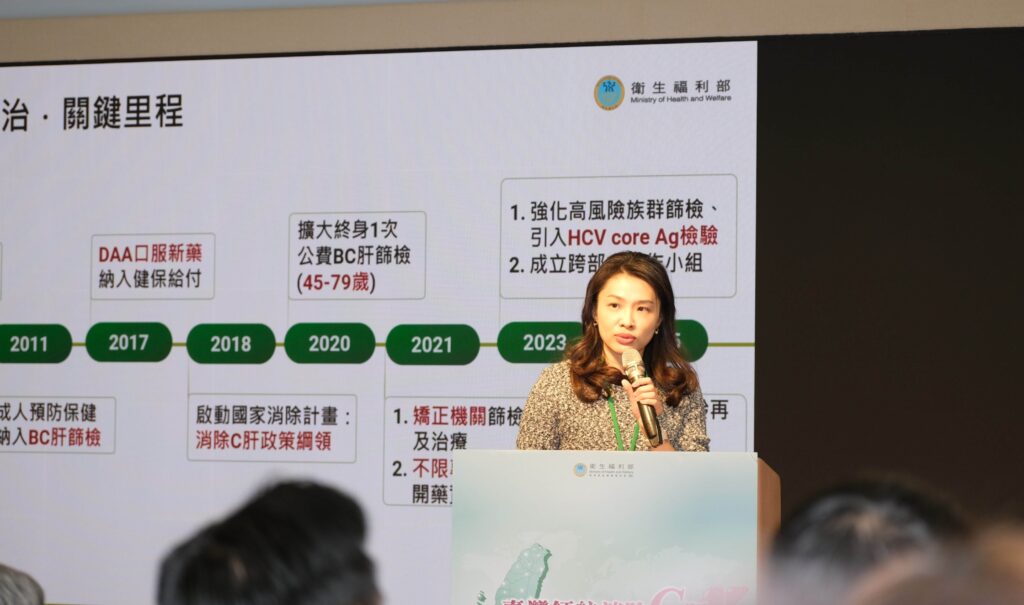 國健署署長沈靜芬表示,為了鞏固消除成果,2025年起政府已將篩檢對象年齡層放寬為39至79歲,至今已有超過755萬人接受過篩檢。