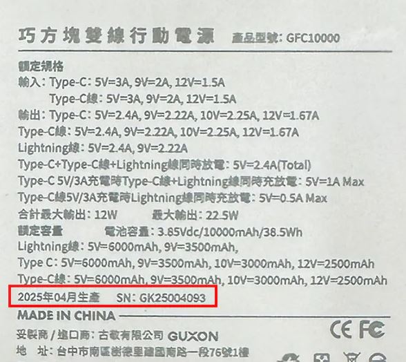 GUXON官網及臉書24日發布的公告,經過全面品質稽核與內部調查,發現型號GFC10000「巧方塊雙線行動電源」的特定批次(批號:GK25004093,生產日期:2025年4月)出現問題。調查結果顯示,電芯原料供應商未經核准自行更換原料,導致特定批次產品的電芯原料與原先驗證條件存在差異。