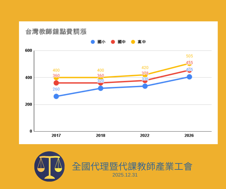 最後,工會強調穩定且可預期的薪資調整制度,才是留住教育人力、提升教學品質的根本。期許教育部未來能進一步研擬制度化規範,建立鐘點費與物價指數(CPI)連動的定期調整公式,讓教師鐘點與導師津貼,能夠隨物價水準穩健成長,為台灣教育人力打造更具吸引力與永續性的制度環境。