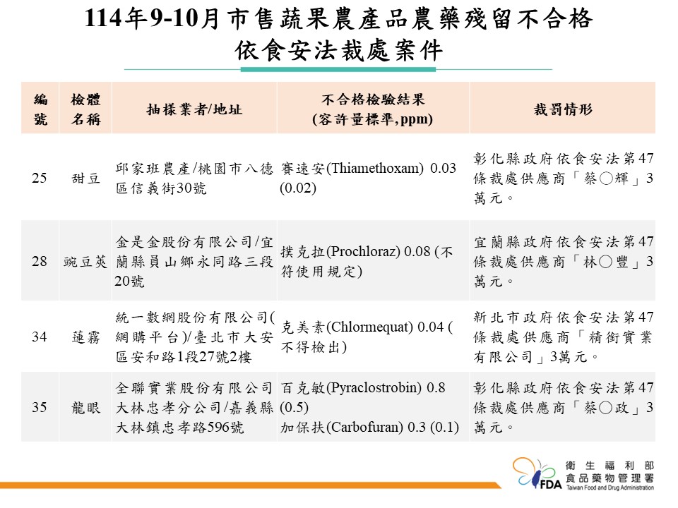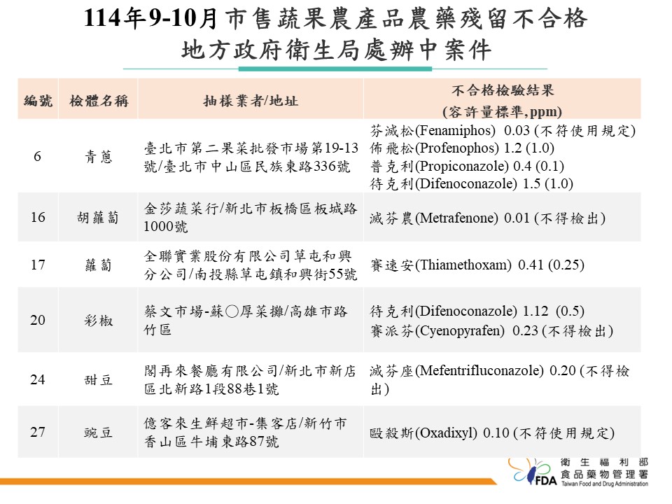魏任廷指出,數據顯示,透過精準抽樣能有效揪出高風險產品。目前針對45件不合格產品,若能溯源者均已移請農政機關依法對源頭農民或供應商進行裁處,累計已裁處11件、共計30萬元罰鍰。