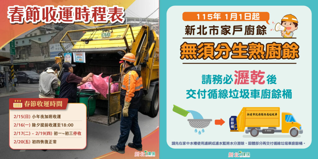 2026六都春節垃圾車懶人包》除夕提早收、初四恢復 收運時段一次看