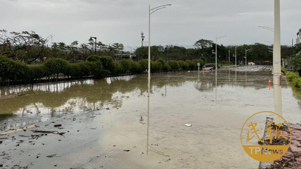 苗栗後龍往造橋路段以及高鐵附近的路面出現積水。(圖/讀者提供)