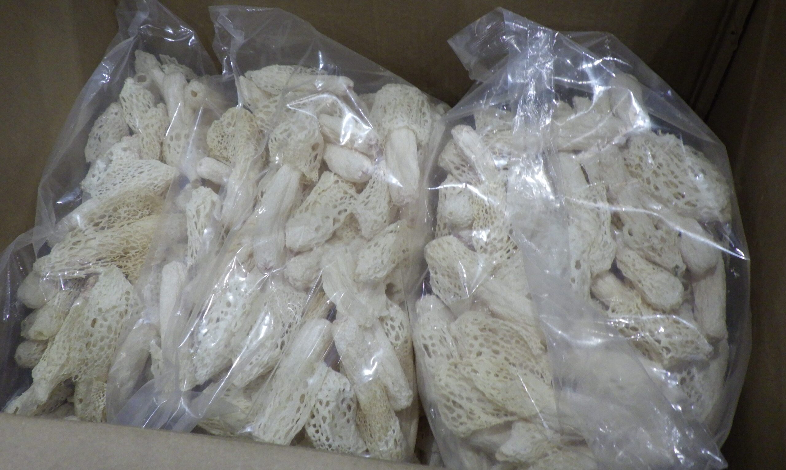 此外,勤穩貿易有限公司從中國大陸進口的「乾竹蓀」同樣在邊境被攔截。該產品檢出重金屬鎘達5 mg/kg,對照「食品中污染物質及毒素衛生標準」,菇蕈類鎘的限量應為2 mg/kg,其數值已高出法規標準一倍以上。這批總重10公斤的乾竹蓀已違反食品安全衛生管理法第17條規定,全數不合格商品皆依程序處置,未流入市場。