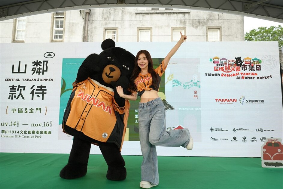 由交通部觀光署主辦的「2025區域觀光圈市集日(中區&金門)」於11月14日至16日在台北華山1914文化創意產業園區熱鬧展開,匯集中台灣七大觀光圈與金門地區,共62家特色業者參與,打造一場融合美食、手作、農產與藝文的多元市集體驗。活動首日更邀請台灣觀光代言人李多慧驚喜現身,與觀光圈吉祥物「喔熊組長」同框互動,掀起現場高潮。