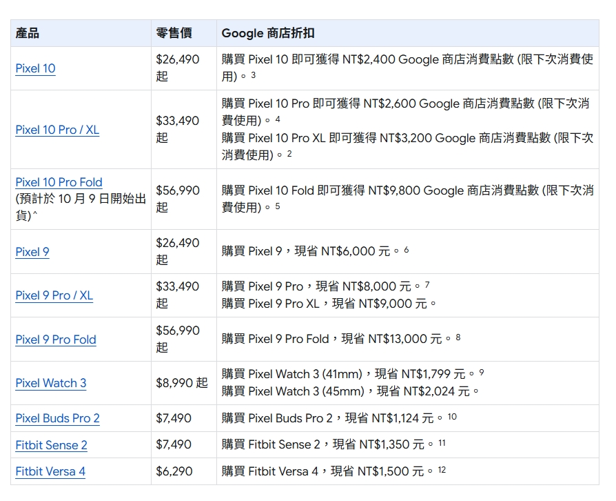 要提醒的是,消費點數將於訂單發貨後 24 小時內發放至帳戶,並僅限下次在臺灣 Google 商店使用。Pixel 10 Pro Fold 預計於2025年10月9日開始出貨。