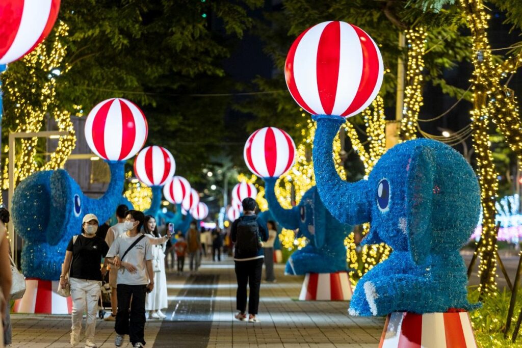 新北耶誕城作為年度盛事,今年邁入第15年,活動從11月14日至12月28日,為期持續45天。今年主題「馬戲嘉年華」首度攜手國際人氣IP「LINE FRIENDS & LINE FRIENDS minini」,打造四大燈區,結合燈光秀,範圍從市民廣場、板橋站前廣場,覆蓋到府中商圈,絕對是年末全台冬季不能錯過的活動之一。