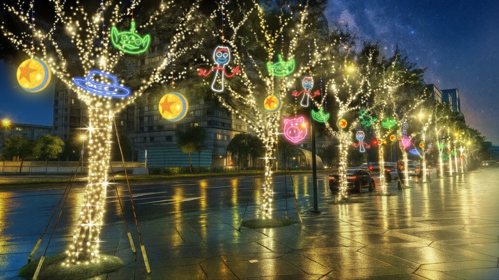 提到信義商圈,當然不能忘了能夠代表台灣的世界知名建築-台北101大樓啦!從11月21日開始一直到明年的3月8日,台北101攜手迪士尼,以經典動畫電影「玩具總動員」30周年為主題,打造如胡迪、巴斯光年等經典角色的燈飾,造景從信義101廣場、延伸到松智路、信義路等地,香堤廣場打卡完畢後,可以往捷運紅線的方向走,繼續感受佳節氣氛。