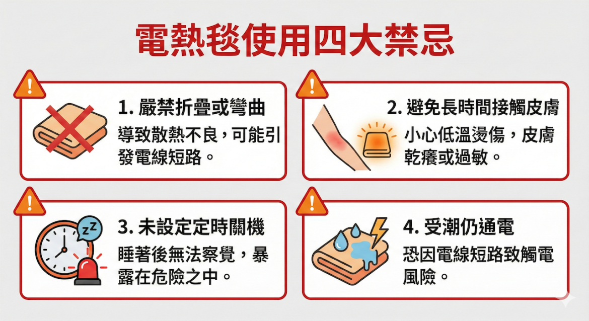 洪誌祺列出電熱毯使用的四大禁忌,提醒民眾千萬別踩雷: