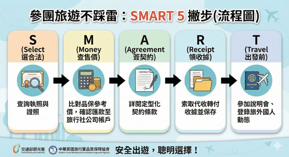 為了迎接春節長假,不少家庭早已備妥預算準備出國犒賞一整年的辛勞。然而,近年旅遊糾紛層出不窮,從航班延誤、行程縮水到業者倒閉風險,處處考驗消費者的選擇。交通部觀光署特別製作「參團旅遊不踩雷,牢記SMART 5撇步」宣導短片,並針對時下流行的郵輪旅遊與低價促銷團,發布五大關鍵提醒,幫助國人聰明挑選旅遊產品。