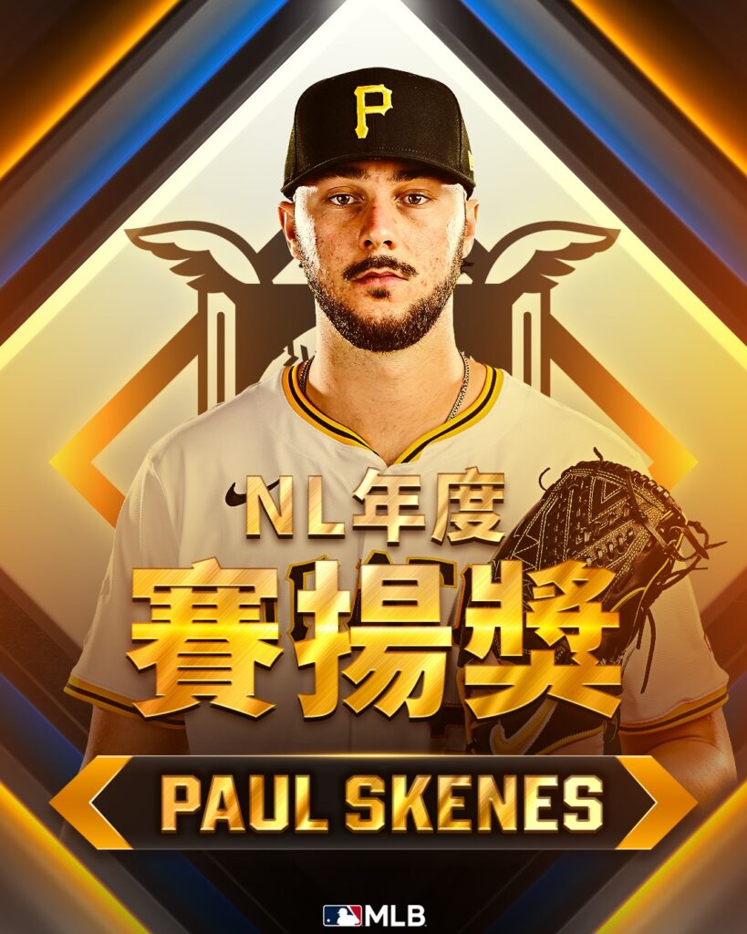 海盜Paul Skenes以全票之姿榮獲國聯賽揚獎。(圖/翻攝自臉書粉專 MLB Taiwan 美國職棒大聯盟)