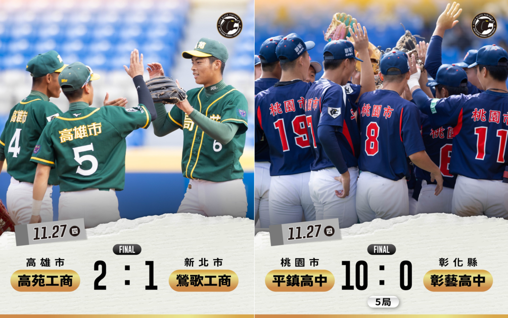 隨著今日兩場比賽結束,平鎮與高苑將會師準決賽舞台,而接下來11月28日將由羅東高工對戰美和高中、以及大溪高中對戰臺東體中,搶下剩餘兩張的4強門票。