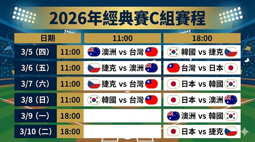 【2026年經典賽C組賽程一次看】